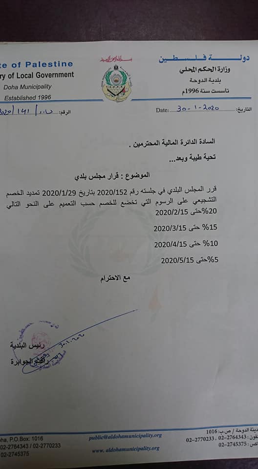 كانون2 30, 12:50 pm الزيارات: 2062 حزيران 20, 09:33 am الزيارات: 1942 كانون2 12, 12:26 pm الزيارات: 2331 كانون2 28, 11:41 am الزيارات: 1898 نيسان 04, 09:33 am الزيارات: 2210 كانون2 12, 11:01 am الزيارات: 2435 السابق1234التالي Search الصفحة الرئيسية عن البلدية كلمة رئيس البلدية الهيكل التنظيمي دوائر البلدية الرسالة والاهداف الخطة الاستراتيجية خدماتنا مرافق البلدية مدينة الدوحـة أصل التسمية الموقع والمساحة خارطة مدينة الدوحة الإعـلام إعلانات البلدية الفعاليات البوم الصور الوسائط المتعددة إصداراتنـا إنجازاتنـا مجال التعليم خدمة المجتمع المحلي مشروع اعادة تأهيل حديقة البلدية المجال الرياضي مجال الصحة والبيئة العمل على تنفيذ مشاريع التوعية البيئية على مدار العام حملة مكافحة الكلاب الضالة مجال البنية التحتية وتأهيل الشوارع مجمل المشاريع التي تم انجازها في الفترات السابقة بيانات البلديـة إقتراحات وشكاوي التعريف بوحدة الشكاوي نموذج طلب الشكاوي إتصل بنا