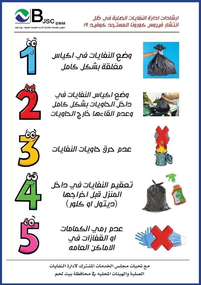 ارشادات هامة إرشادات إدارة النفايات الصلبة في ظل انتشار فايروس كورونا حزيران 28, 09:54 am الزيارات: 1842 السابق التالي