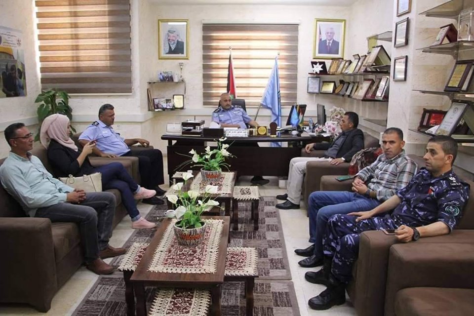 Bethlehem - Doha - Mayor of the Municipality of Doha Raafat Al-Jawabra and his accompanying delegation visited Brigadier Tareq Al-Hajj, Director of Bethlehem Police Directorate, to congratulate him on his assumption of his new position, wishing him further progress and success in the rule of law